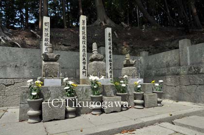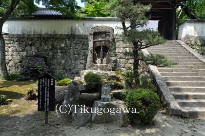 高月院(松平氏墓所) 投稿日時: 2012年7月12日 投稿者: 筑後守 住所:愛知県豊田市松平町寒ヶ入44 浄土宗。1367年、在原信重(松平家初代・親氏の義父)が創建。寂静寺という寺号だったが、応安年間(1368~1374年)に親氏が本堂や山門などを寄進し高月院と改め松平氏の菩提寺とした。江戸時代は徳川家の厚い庇護を受ける。現在の本堂や山門は1641年に徳川家光が建立したものである。 (総門) (仏足石。釈迦の代理を意味し、そこで説法したことを示す) (山門) (本堂) (松平氏墓所。写真は左から四代・親忠の夫人、親氏、二代・泰親の墓。親忠の第四子が当寺の住職を務めたため親忠夫人の墓があると推測されている) ○写真の提供についてはこちらをクリック