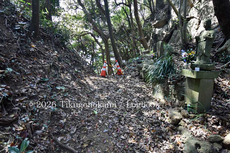 (断崖の大きな洞穴に穴観音を目当てに参拝したが、見学路崩落のため行けなかった。事前にネットの情報で知ってはいたがもしかしたらと思い登った。穴観音の先に座禅石があって、そこからの景色が良かったらしい)