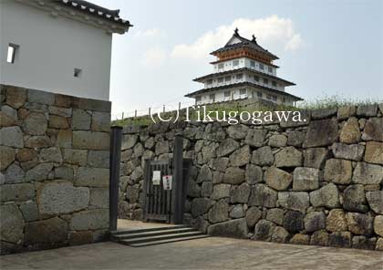 (骨組みの木材と発泡スチロールで作成された模擬天守。2013年に期間限定で設置された)