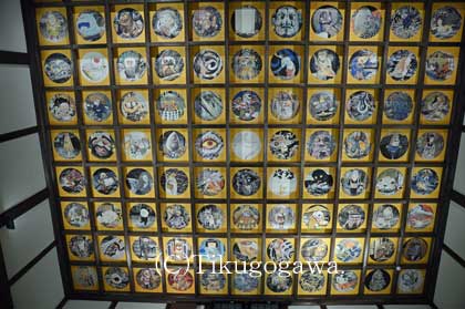 2014年西伯耆史跡巡り(圓流院の妖怪天井画) 投稿日時: 2014年8月14日 投稿者: 筑後守 ・圓流院・・・鳥取県西伯郡大山町大山58。天台宗。江戸時代、大山寺の塔頭として創建された。2009年の解体修理の際、水木しげるの妖怪天井画が飾られ名所となっている。 (本堂) (本尊の地蔵菩薩) (妖怪画その1) (妖怪画その2) 感想:お寺の方が「本尊の前で寝転がって天井を見て下さい。撮影も自由です」と仰ったので、その通りにしました。