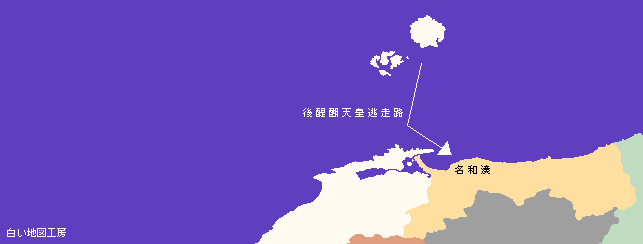 後醍醐天皇らは最初出雲の杵築浦を目指したが西風に流されて伯耆国の名和湊についた。